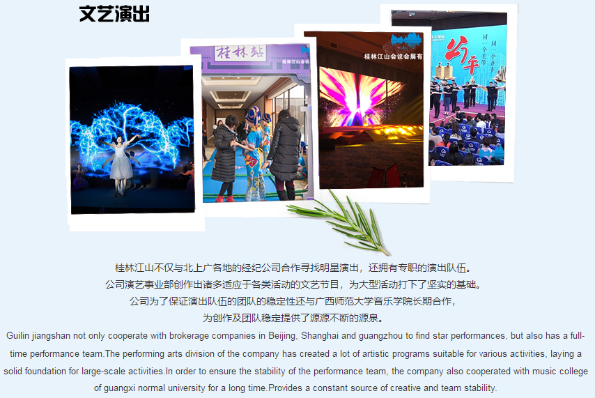 桂林江山會議會展有限責公司是一家專業(yè)的MICE公司;是傳統(tǒng)服務與信息技術相結合的科技型公司。 公司立足于線下活動的豐富經(jīng)驗,堅持運用信息技術為各類活動(項目)提供更優(yōu)質與便捷的管理與服務。公司開發(fā)的《冬瓜云服務與管理系統(tǒng)》《雙線展覽平臺》《注冊通》《報到通》《多點位全景直播平臺》等應用軟件處于行業(yè)領先地位。桂林江山會議是一個大家庭,于2012年創(chuàng)立,經(jīng)過長期的經(jīng)營,吸納與培訓了大批關于會務服務、設計創(chuàng)意、公關演藝、會獎活動、信息技術等項目的眾多專業(yè)人材,涉及展覽工程搭建、慶典活動策劃、影視制作與直播、大型文藝演出、會獎旅游、H5、小程序等軟件的開發(fā)等眾多業(yè)務。江山會議由一支具有超前的營銷理念并...
